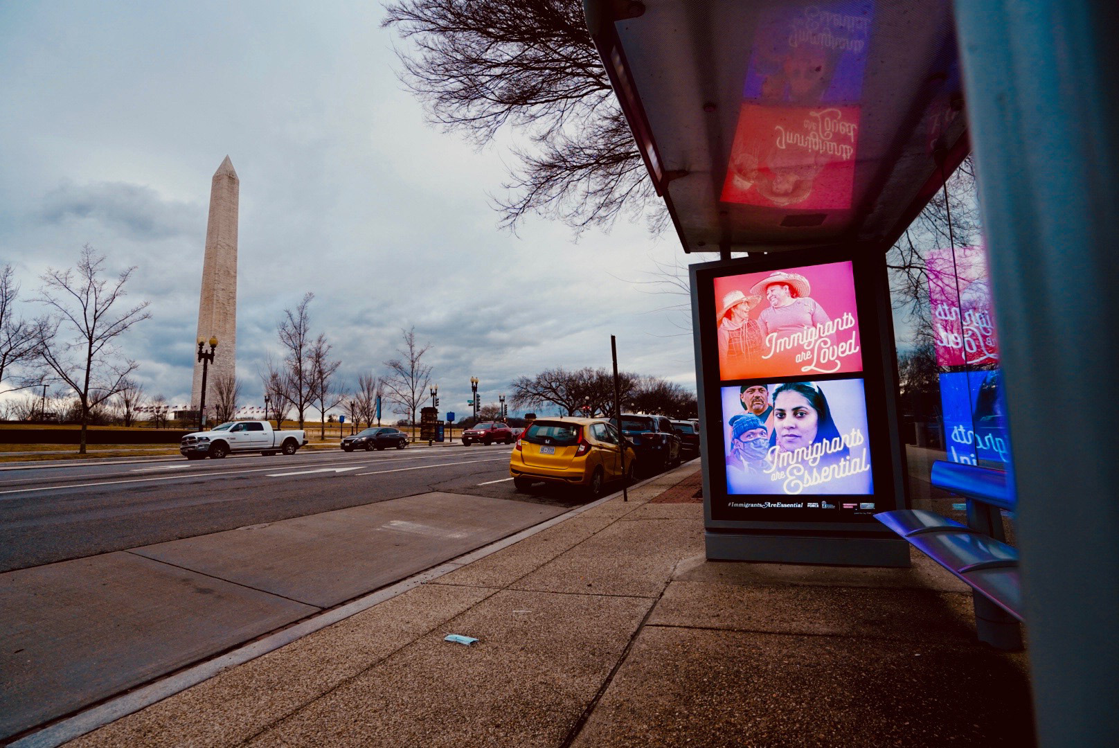 In collaboration with The Soze Agency, the National Immigration Law Center, and Resilience Force, I designed a series of out-of-home ads that aimed to remind politicians and the general public of the immense value of immigrant Americans. These ads included billboards, digital signage, and wheatpaste posters on display during the week of Valentine's Day, 2021. The artwork features portrait images of immigrant essential workers in red and purple duotones, to fit the Valentine's Day theme.