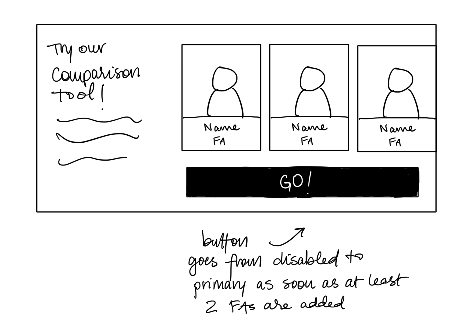 I then got to work exploring comparison tools that already exist as somewhat of a competitive analysis. Following my inspiration hunt, I laid out the plan for the user journey and sketched out some low-fidelity wireframes.